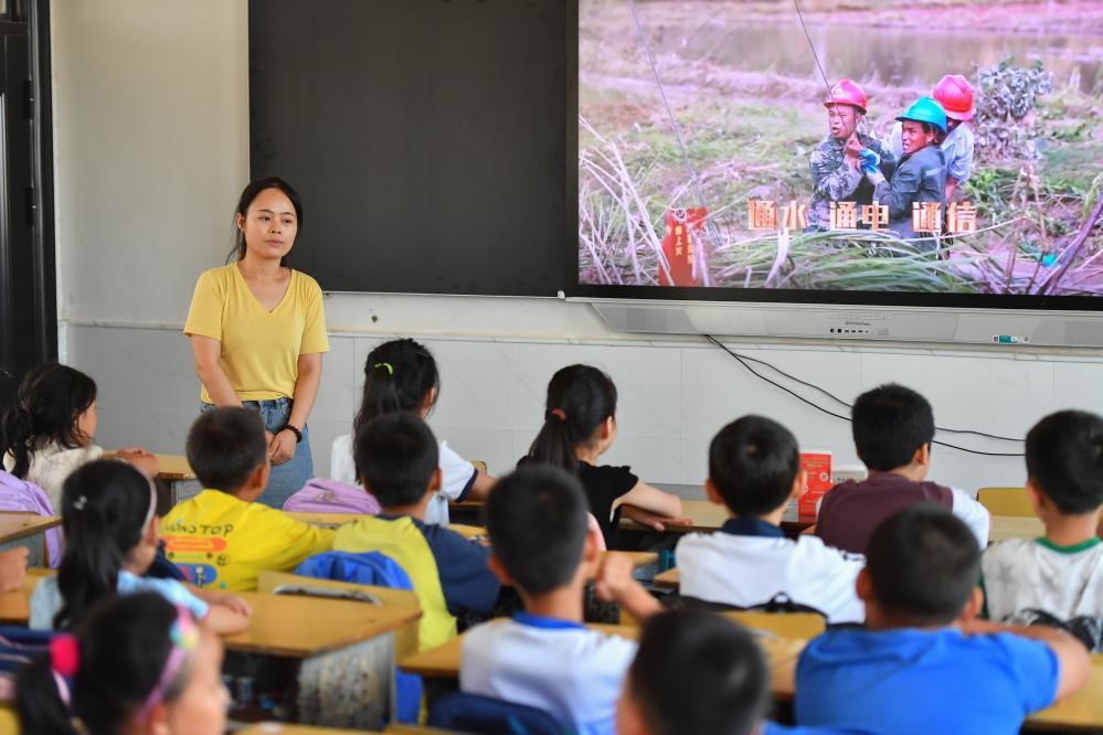 今年夏天,湖南華容縣等地遭受洪澇災(zāi)害。9月,華容縣一所學(xué)校,老師通過講述防災(zāi)救災(zāi)故事,引導(dǎo)孩子們知情、共情,汲取成長的力量。