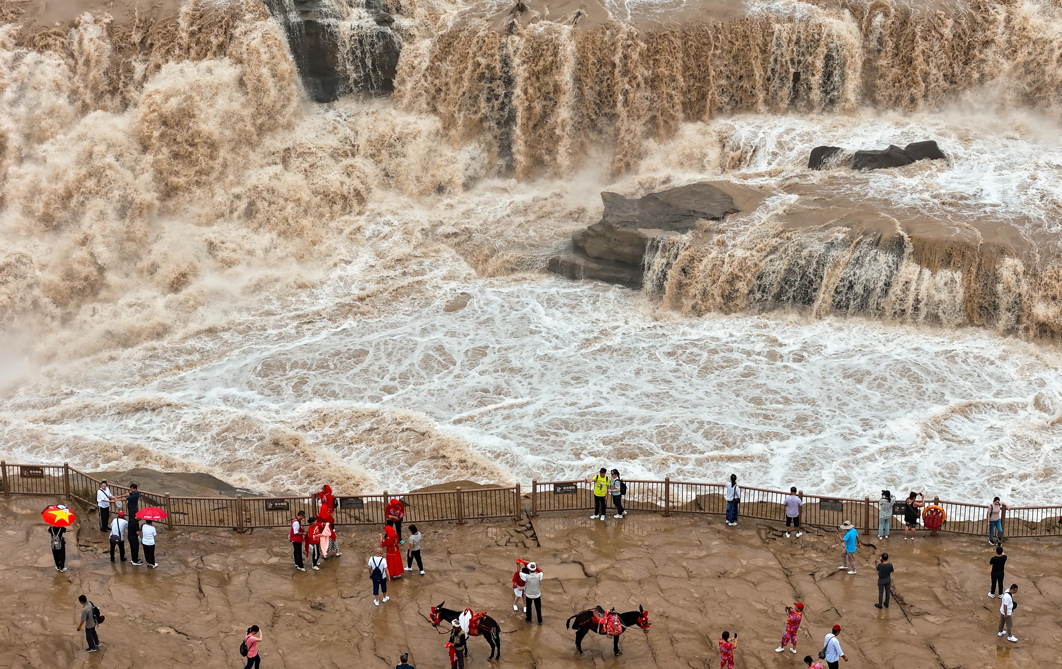 9月9日,游客在黃河壺口瀑布景區游覽。