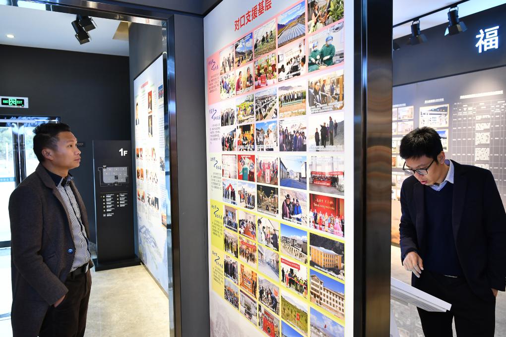 2019年4月1日,人們在全國援藏展覽館內參觀。新華社記者李鑫 攝