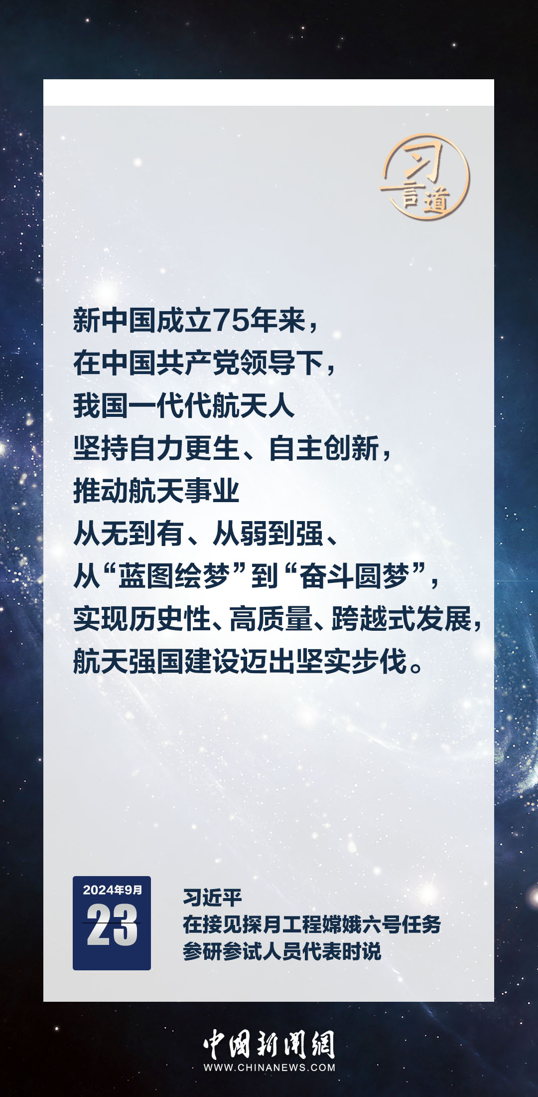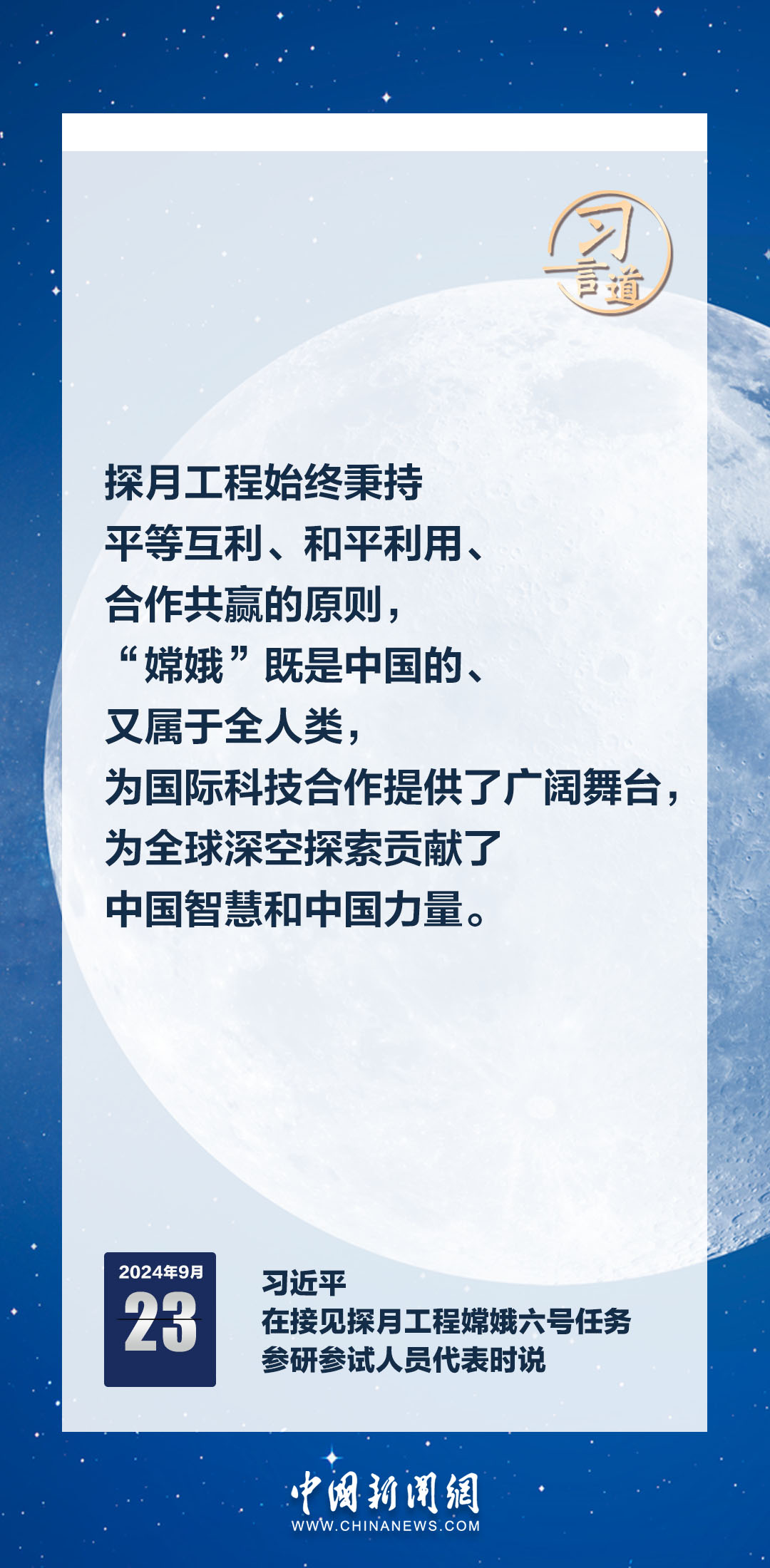 中共中央總書記、國家主席、中央軍委主席習近平23日在人民大會堂接見探月工程嫦娥六號任務參研參試人員代表時發表重要講話。習近平指出——