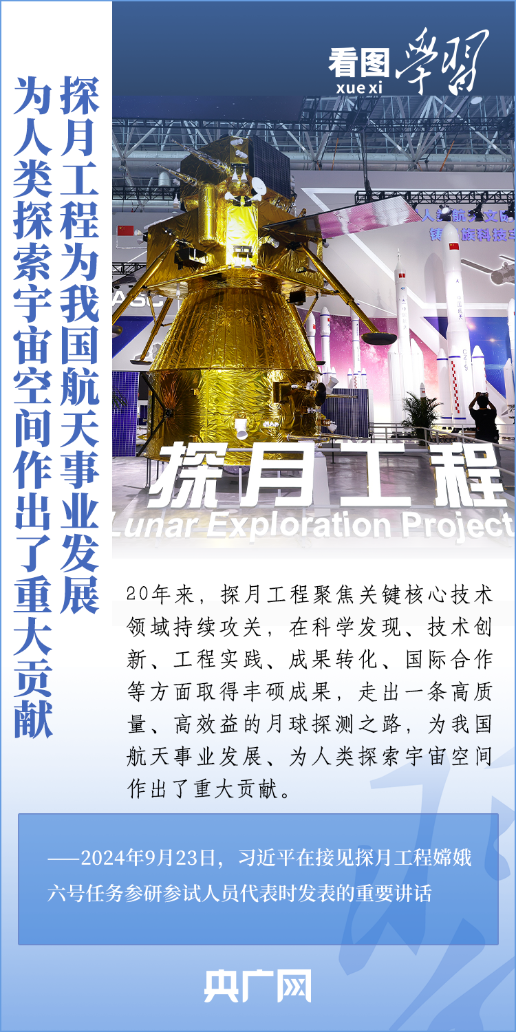中國探月工程成果凝結著我國幾代航天人的智慧和心血。9月23日,習近平總書記接見探月工程嫦娥六號任務參研參試人員代表并發表重要講話。總書記高度肯定嫦娥六號任務成功的重要意義,以及探月工程為我國航天事業發展、為人類探索宇宙空間作出的重大貢獻,勉勵航天戰線工作者再接再厲、乘勢而上,為建設航天強國再立新功。一起來學習!
