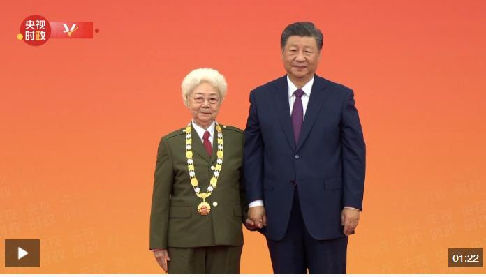 中華人民共和國國家勛章和國家榮譽稱號頒授儀式9月29日上午10時在人民大會堂隆重舉行。中共中央總書記、國家主席、中央軍委主席習近平向“人民藝術(shù)家”國家榮譽稱號獲得者田華頒授獎章。
