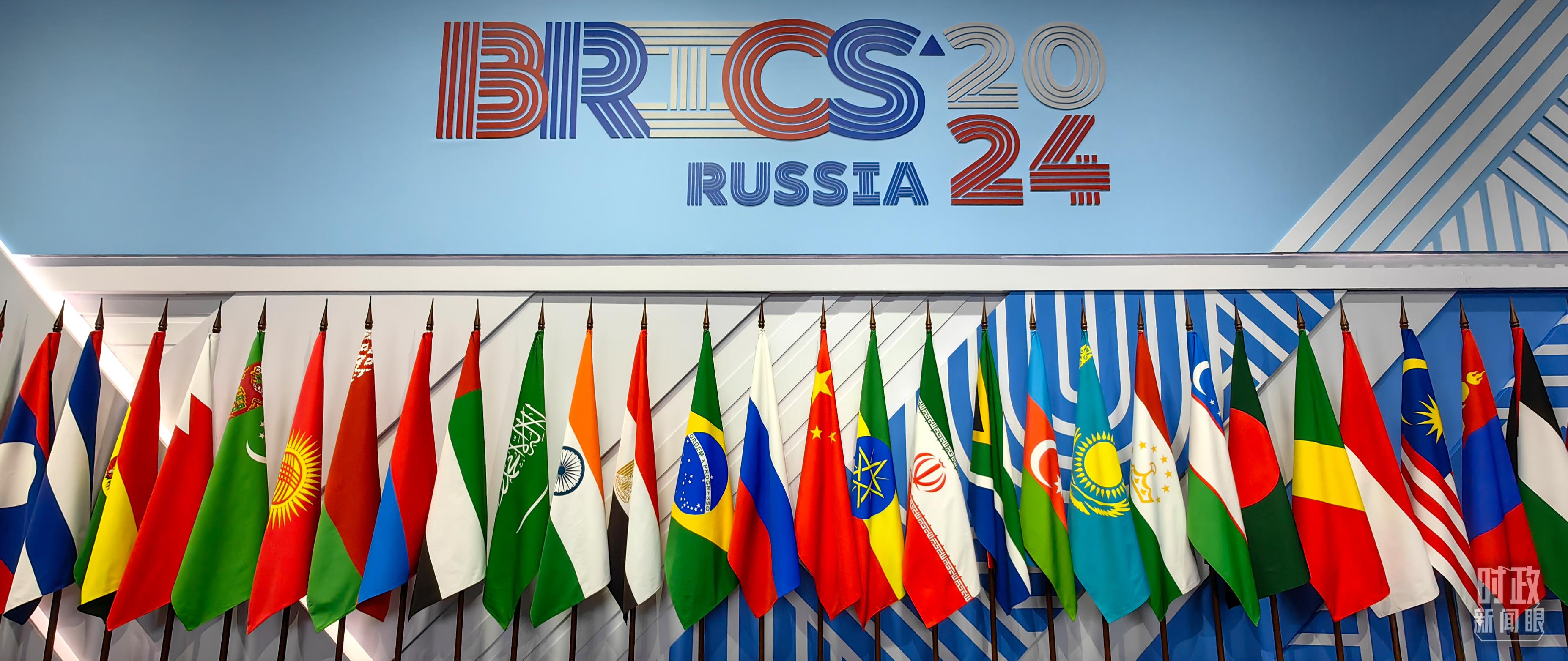 金磚國家領導人大范圍會議現場擺放的旗陣。(總臺央視記者段德文拍攝)