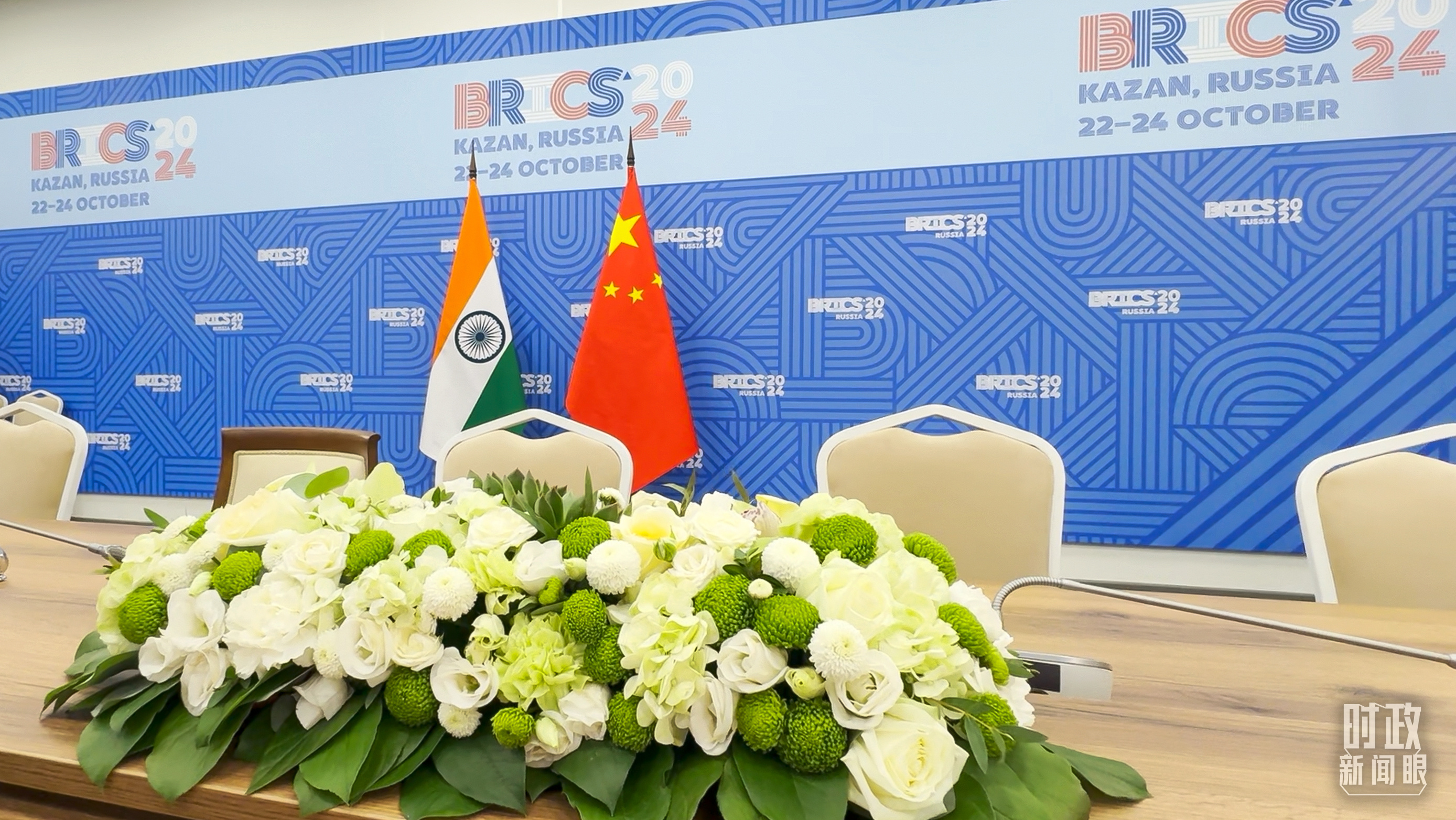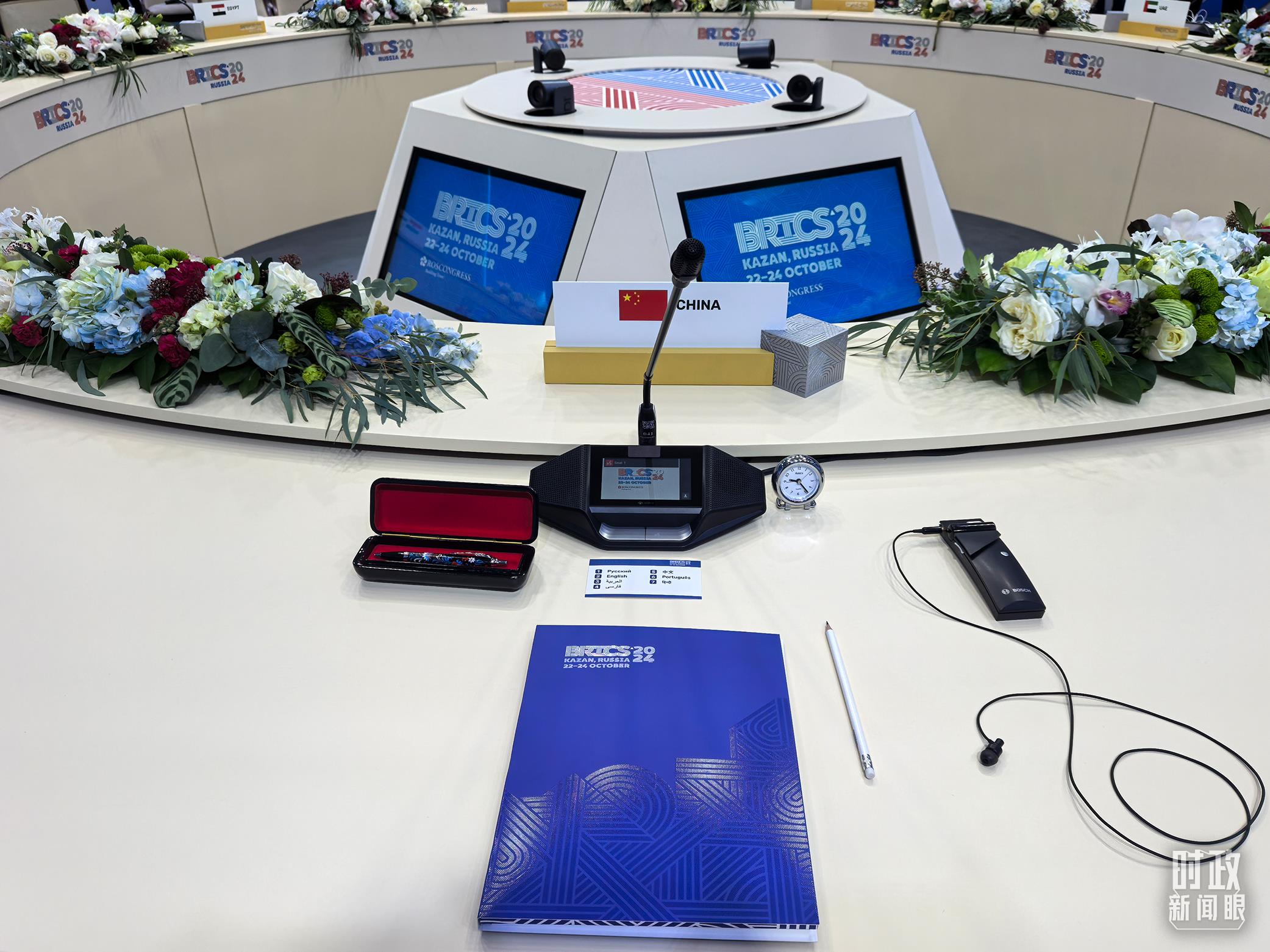 金磚國家領導人小范圍會議現場的會議桌。(總臺央視記者程鋮拍攝)