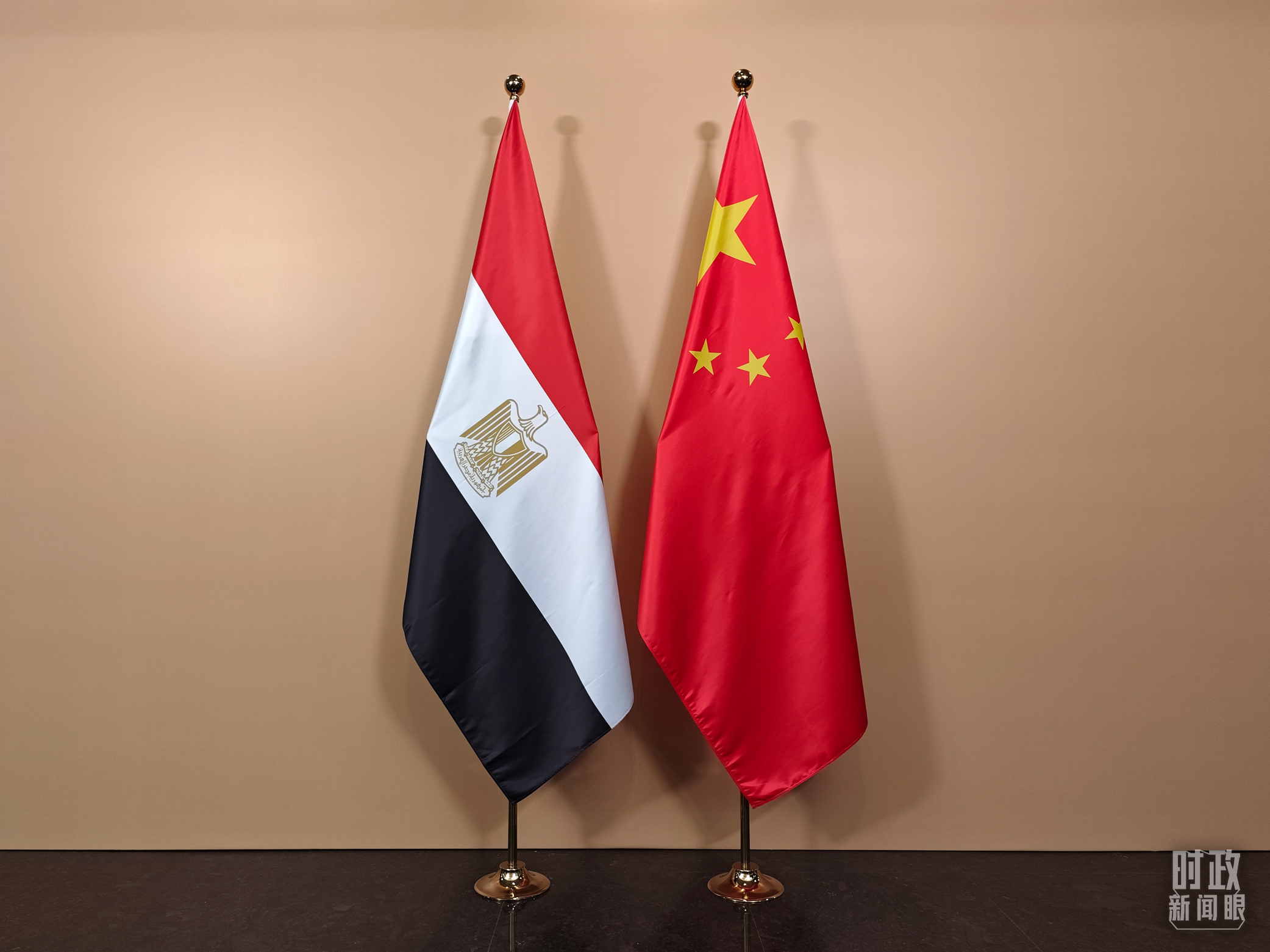 會見廳外的中國埃及兩國國旗。(總臺央視記者彭漢明拍攝)