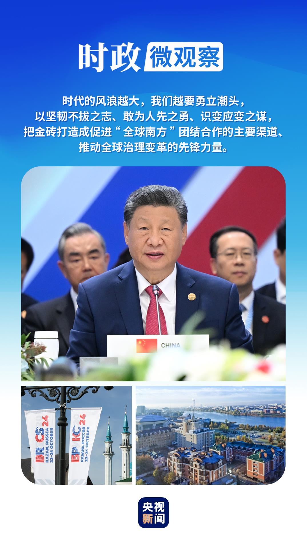 喀山之行的一系列密集活動中,習近平主席深刻闡釋“精神力量”與“挺膺擔當”,為開創“大金磚合作”高質量發展新局面引領航向。《時政微觀察》為你解讀。