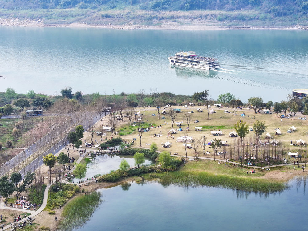 2024年3月16日,游客在重慶廣陽島東島頭一帶游覽、休閑(無人機照片)。廣陽島是長江上游最大的江心島。近年來,當(dāng)?shù)叵到y(tǒng)推進自然恢復(fù)、生態(tài)修復(fù),豐富生物多樣性。2024年,重慶廣陽島生態(tài)修復(fù)項目成功入選聯(lián)合國“生態(tài)恢復(fù)十年”優(yōu)秀案例。