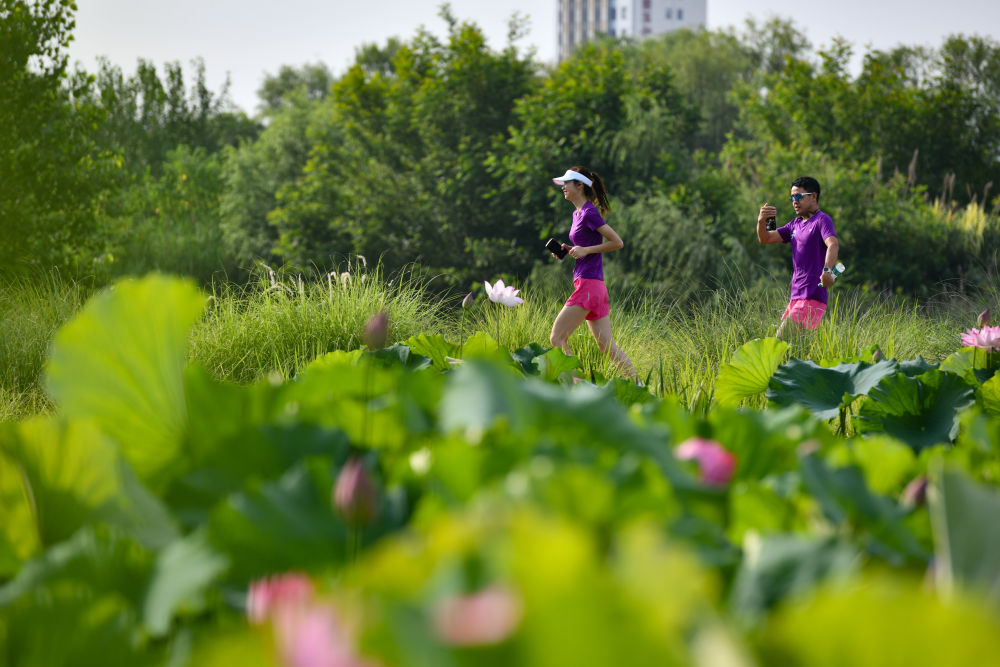 2024年6月23日,市民在陜西省漢中市天漢濕地公園內(nèi)運動休閑。漢江是長江的最大支流,是南水北調(diào)中線工程的重要水源。近年來,漢中市加強對漢江源頭和沿岸濕地生態(tài)保護修復(fù),構(gòu)建人水和諧共生的美麗城市,確保“一泓清水永續(xù)北上”。