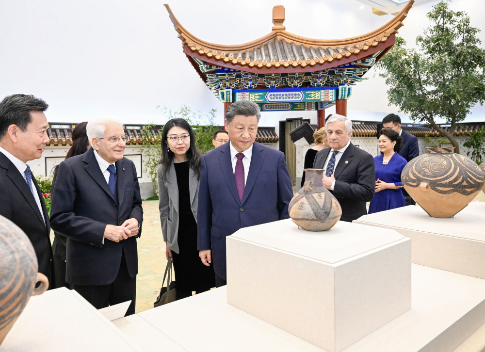 11月8日晚,北京人民大會堂。新華社記者的鏡頭記錄下這樣一個瞬間——習近平主席同意大利總統馬塔雷拉共同賞鑒中國文物。這些珍貴文物,是意大利查獲并于近期返還中方的。