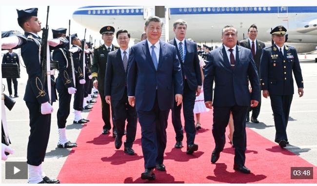 習近平發表機場書面講話,向秘魯政府和秘魯人民致以誠摯問候和良好祝愿。
