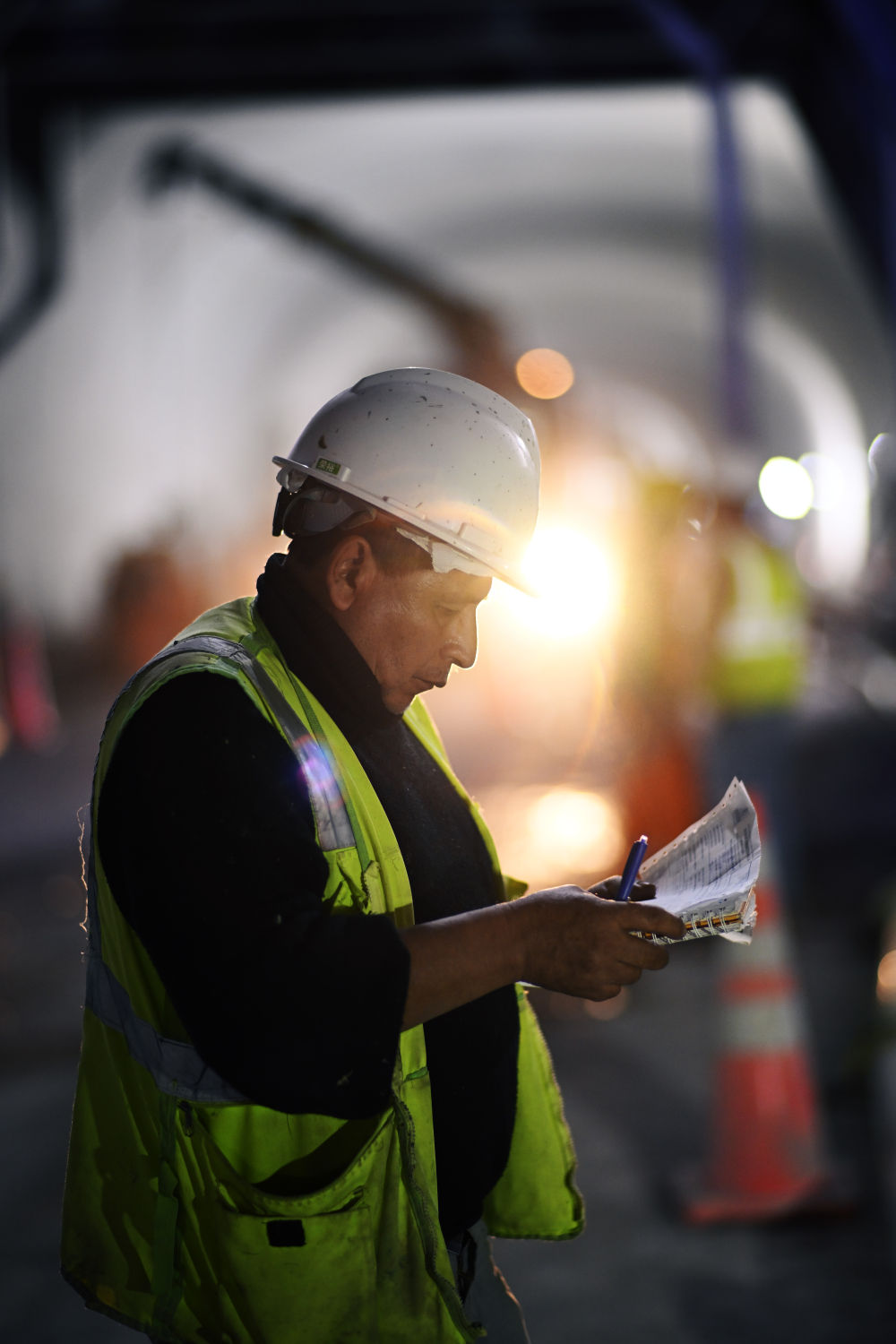 2024年10月8日,一名當地員工在秘魯錢凱隧道施工現場忙碌。