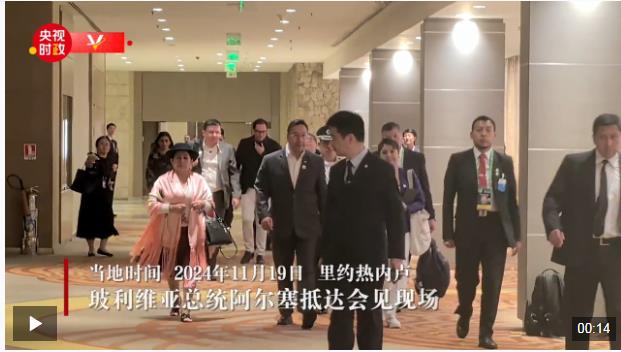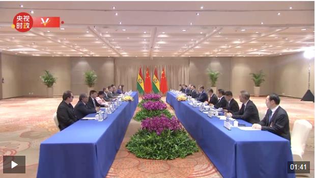 當地時間11月19日,國家主席習近平在里約熱內盧出席二十國集團領導人峰會期間會見玻利維亞總統阿爾塞。