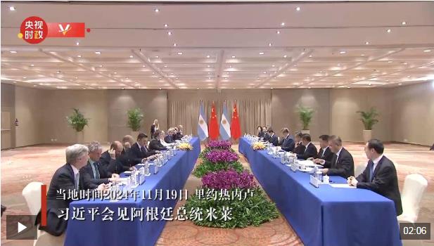 當(dāng)?shù)貢r(shí)間11月19日,國(guó)家主席習(xí)近平在里約熱內(nèi)盧出席二十國(guó)集團(tuán)領(lǐng)導(dǎo)人峰會(huì)期間會(huì)見(jiàn)阿根廷總統(tǒng)米萊。