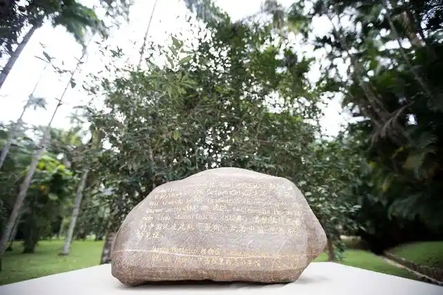 △巴西里約熱內(nèi)盧植物園,來自中國福建的華安石紀(jì)念牌記載:“1812年,首批抵達巴西的中國人在此栽下茶樹”。