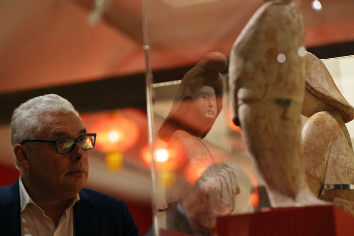 2024年11月18日,在位于法國(guó)巴黎的吉美國(guó)立亞洲藝術(shù)博物館,一名觀眾參觀“中國(guó)·唐——一個(gè)多元開(kāi)放的朝代(7至10世紀(jì))”展覽。新華社記者 高靜 攝