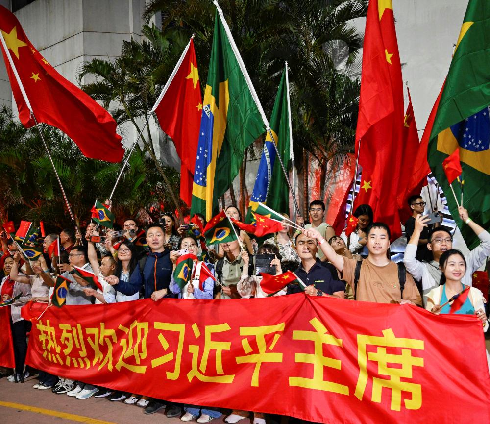 2024年11月,習近平主席在巴西里約熱內(nèi)盧出席二十國集團領(lǐng)導人第十九次峰會期間,里約熱內(nèi)盧街頭熱情的歡迎人群。