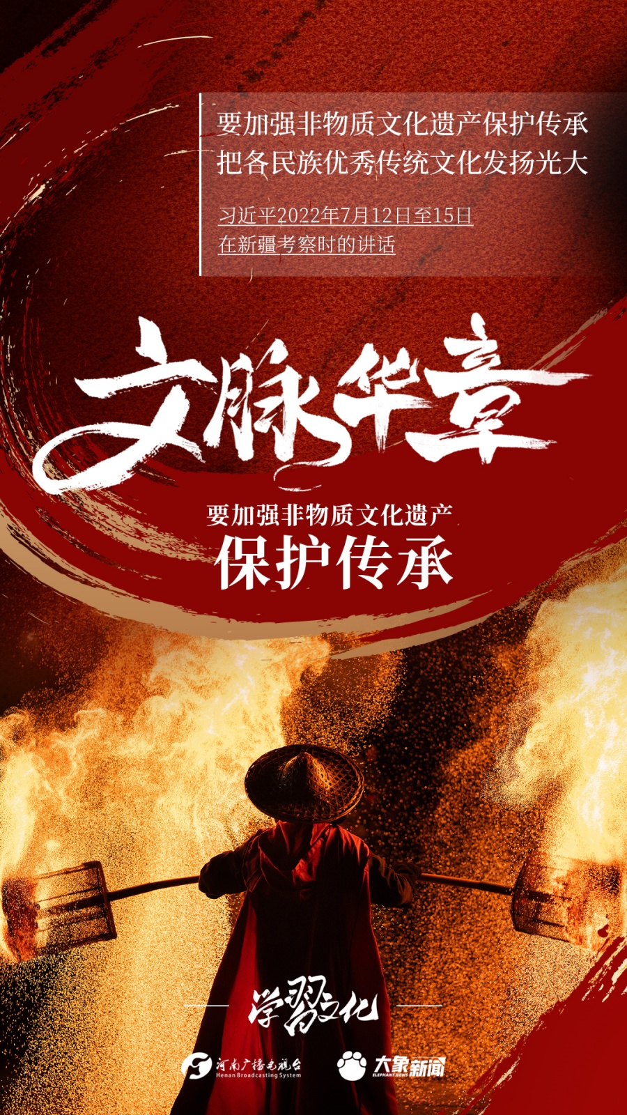 非物質文化遺產是中華優秀傳統文化的重要組成部分,是中華文明綿延傳承的生動見證,是我國各族人民寶貴的精神財富。習近平總書記十分關心非物質文化遺產的保護傳承,多次強調“要扎實做好非物質文化遺產的系統性保護”“培養好傳承人”等。大象新聞為您梳理,邀您一起學習、領悟、踐行。