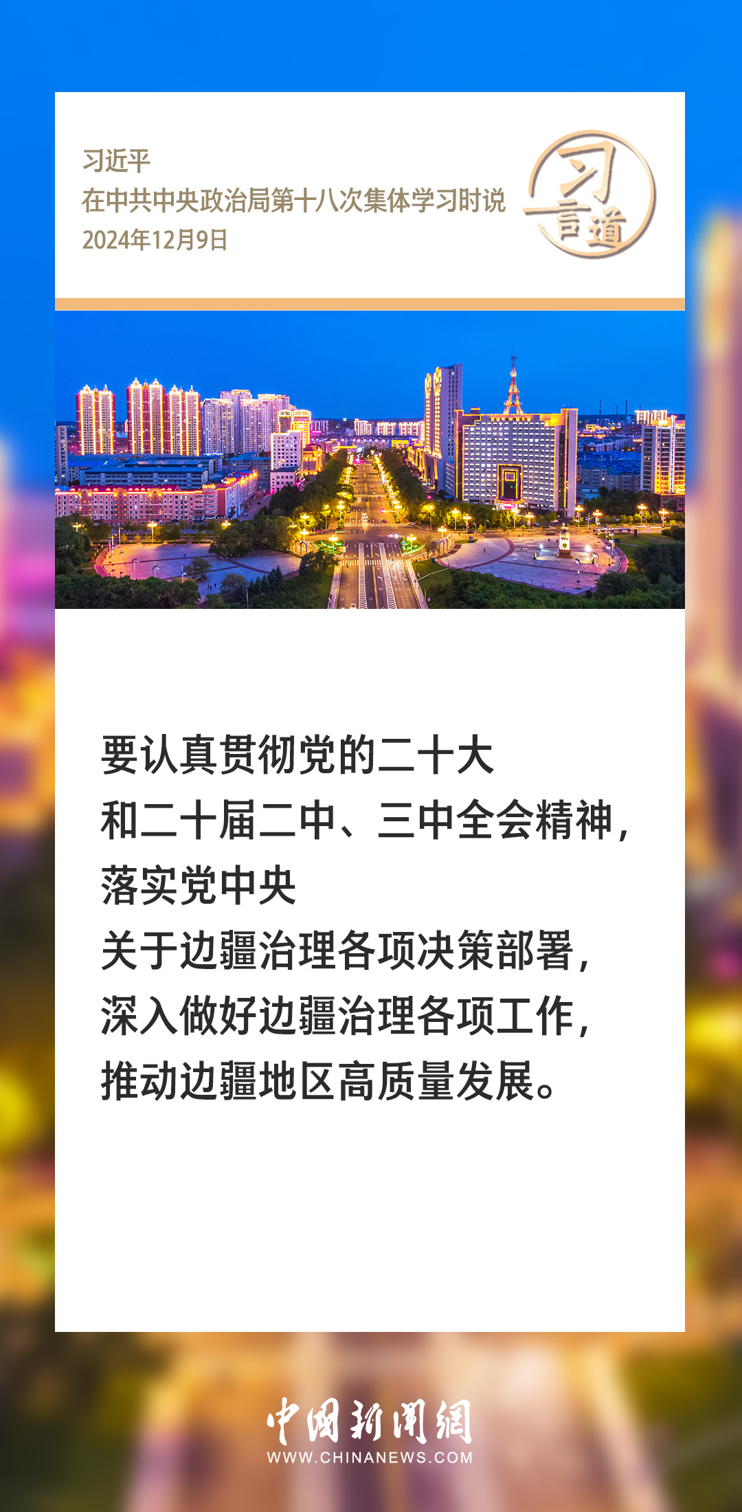 中共中央政治局12月9日就我國歷史上的邊疆治理進行第十八次集體學習。中共中央總書記習近平在主持學習時強調——