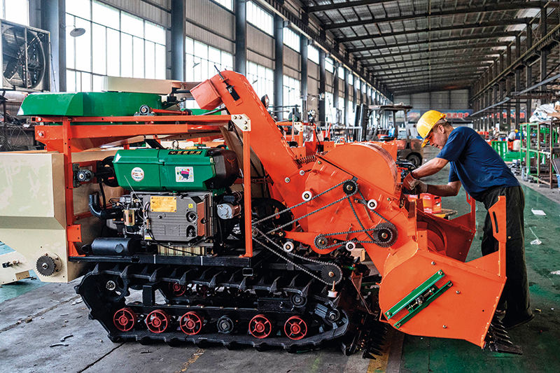 湖南省婁底市雙峰縣湖南湘源金穗智能裝備有限公司工人在組裝小型收割機(2024年9月11日攝) 陳思汗攝 / 本刊