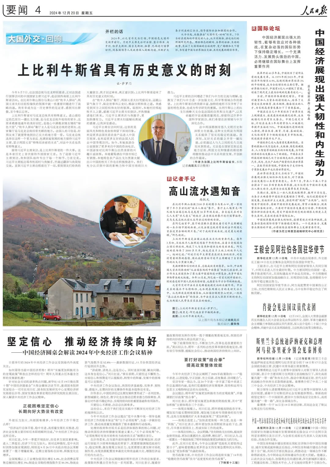 今年5月7日,應(yīng)法國(guó)總統(tǒng)馬克龍?zhí)貏e邀請(qǐng),正對(duì)法國(guó)進(jìn)行國(guó)事訪問的中國(guó)國(guó)家主席習(xí)近平,赴法國(guó)西南部上比利牛斯省訪問。在比利牛斯山圖爾馬萊山口的“牧羊人驛站”,兩國(guó)元首夫婦在輕松愉快的氛圍中就一些重要問題進(jìn)行了戰(zhàn)略溝通。我有幸成為這一歷史事件的見證者,感到無比驕傲,至今難以忘懷。