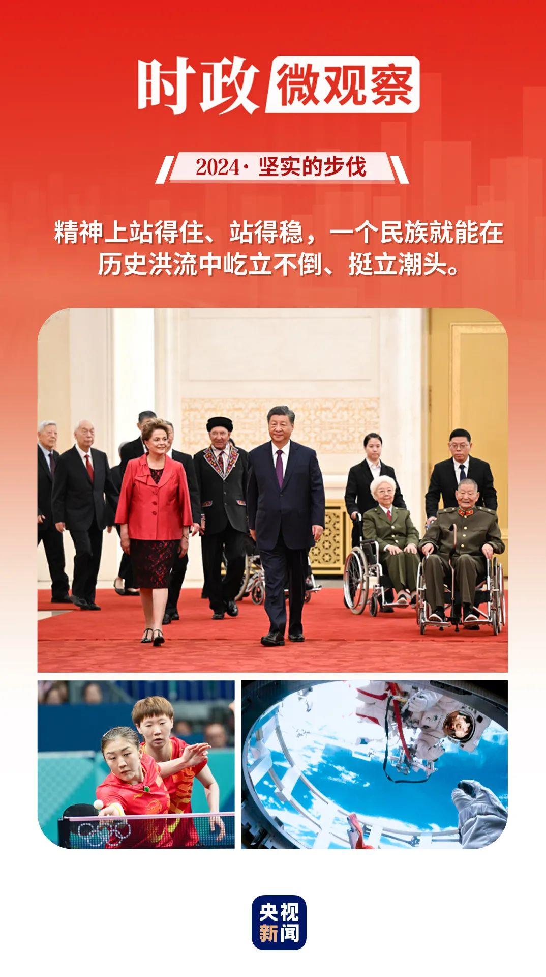 回望2024年,黨的二十屆三中全會標(biāo)記下改革開放進(jìn)程又一重要歷史性時刻;我們熱烈慶祝中華人民共和國成立75周年 、澳門回歸祖國25周年,匯聚砥礪前行的強(qiáng)大力量;中國體育代表團(tuán)取得夏季奧運會境外參賽最好成績,生動詮釋了新時代中國精神;太空遨游、智能迭代、長橋飛渡、巨輪啟航,中國的創(chuàng)新動力、發(fā)展活力勃發(fā)奔涌……中國人民更加自信自強(qiáng),奮斗精神更加昂揚。