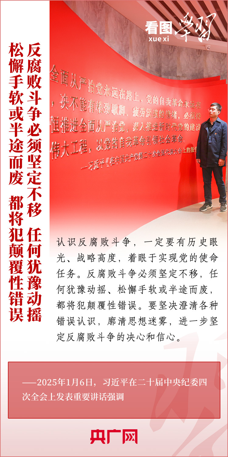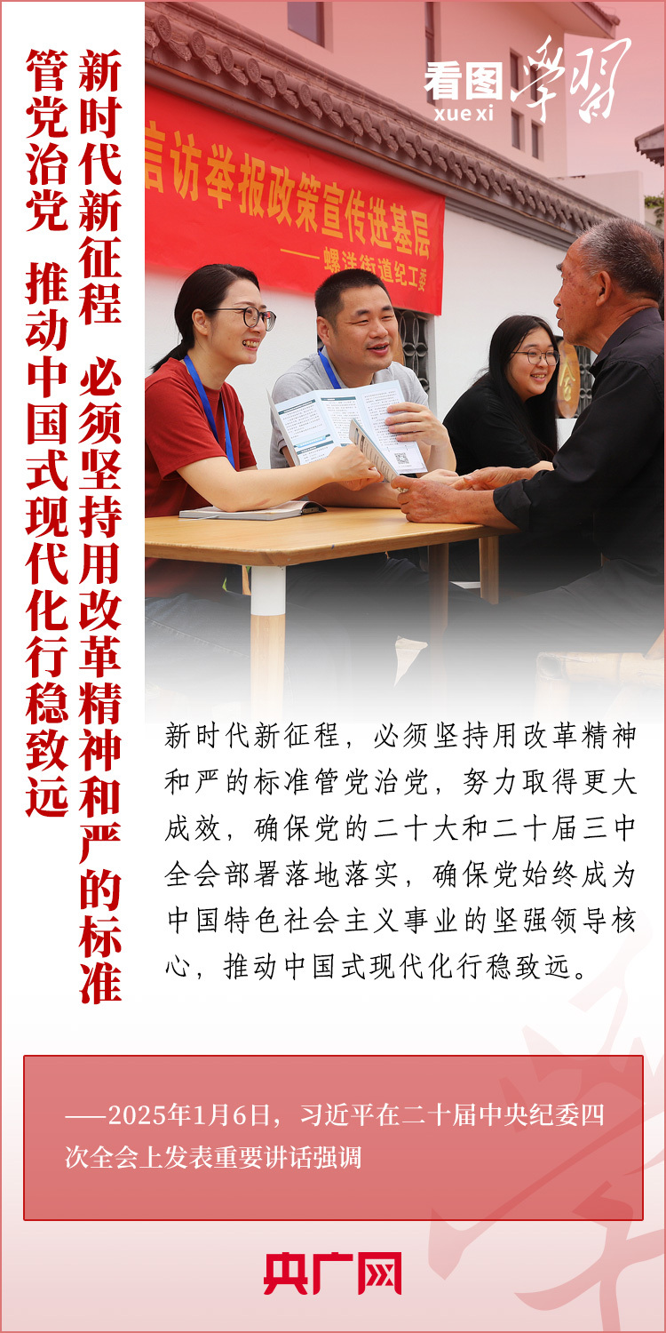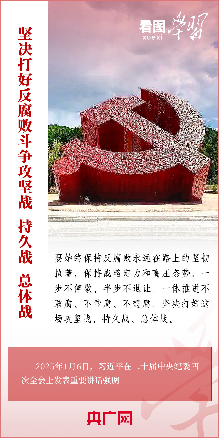 1月6日,習近平總書記在二十屆中央紀委四次全會上發(fā)表重要講話,充分肯定過去一年全面從嚴治黨取得的新進展、新成效,深刻分析當前反腐敗斗爭形勢,對堅決打好反腐敗斗爭攻堅戰(zhàn)、持久戰(zhàn)、總體戰(zhàn)提出明確要求。總書記強調(diào),新時代新征程,必須堅持用改革精神和嚴的標準管黨治黨,努力取得更大成效,確保黨的二十大和二十屆三中全會部署落地落實,確保黨始終成為中國特色社會主義事業(yè)的堅強領導核心,推動中國式現(xiàn)代化行穩(wěn)致遠。一起來學習!