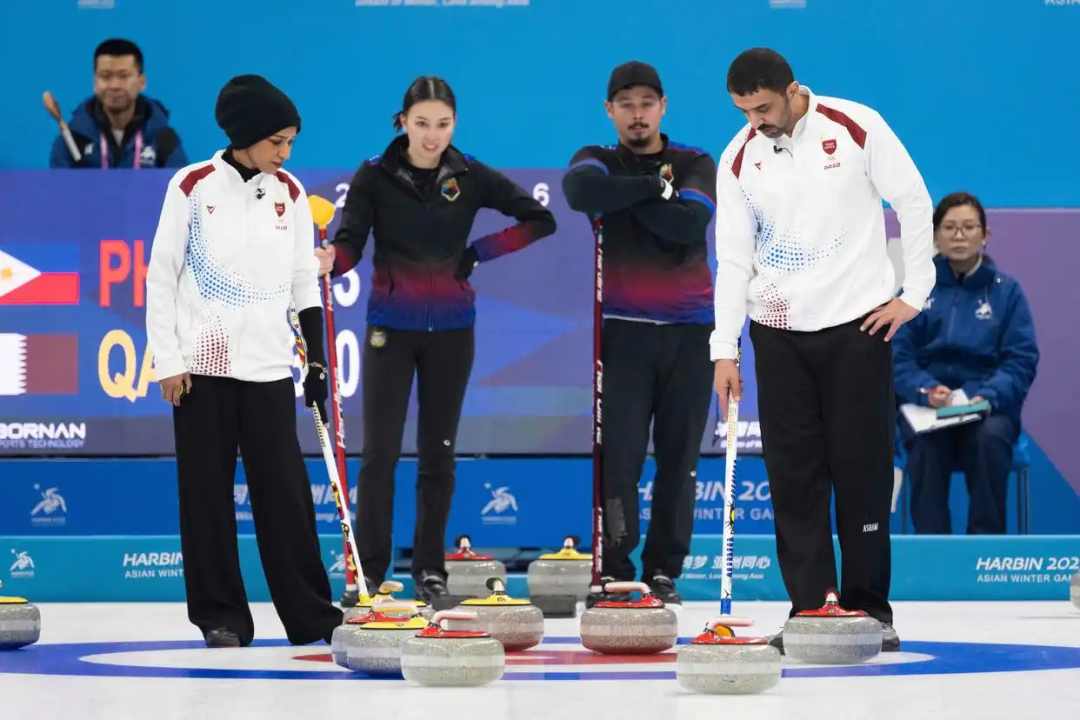 2月5日,亞冬會冰壺混雙循環賽B組第3輪比賽中,菲律賓隊11比3戰勝卡塔爾隊。