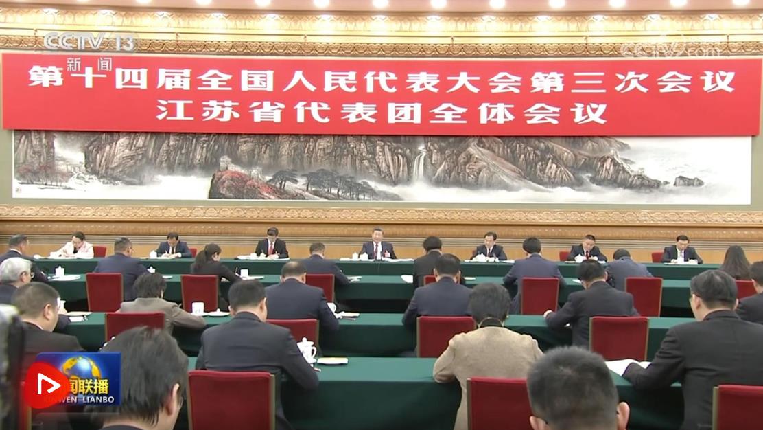 在聽取大家發(fā)言后,習(xí)近平作了發(fā)言。他首先表示贊成政府工作報告,對江蘇工作予以肯定,希望江蘇落實(shí)好挑大梁的責(zé)任,努力取得新的更大成績。
