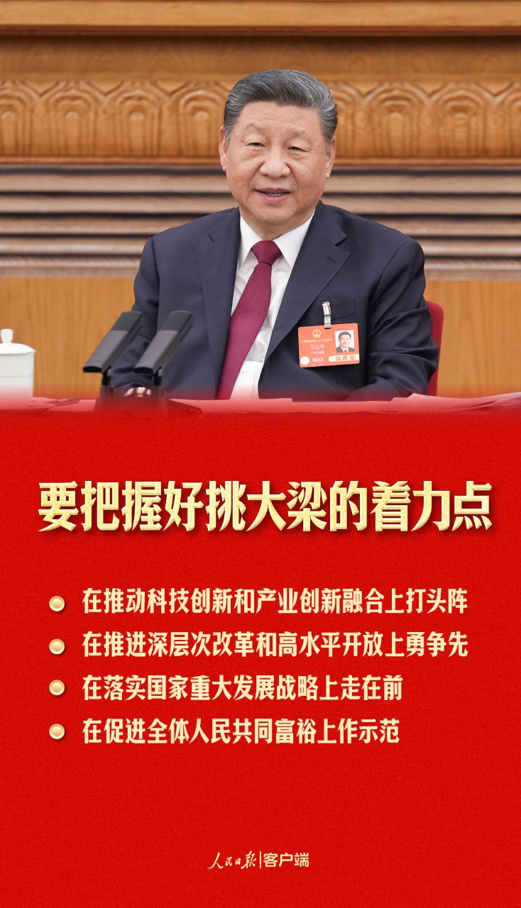 經(jīng)濟大省怎么挑大梁?這次參加江蘇代表團審議,習(xí)近平總書記提出要把握好挑大梁的4個著力點:在推動科技創(chuàng)新和產(chǎn)業(yè)創(chuàng)新融合上打頭陣,在推進深層次改革和高水平開放上勇爭先,在落實國家重大發(fā)展戰(zhàn)略上走在前,在促進全體人民共同富裕上作示范。