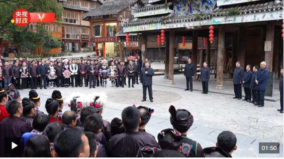 當天下午,習近平總書記此次考察第一站,走進位于黔、湘、桂三省區交界地段的肇興侗寨。