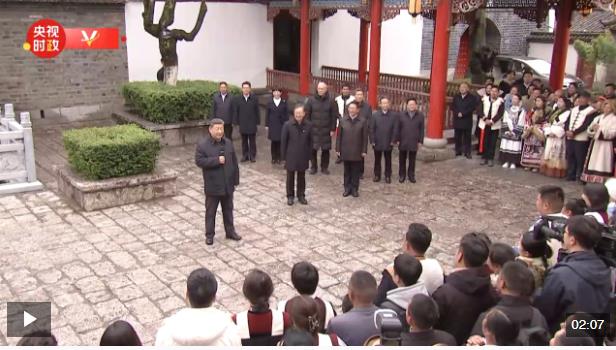 在麗江古城,總書記重點了解當地加強歷史文化遺產保護利用、鑄牢中華民族共同體意識等情況,不時停下腳步同當地居民和沿途游客交流。