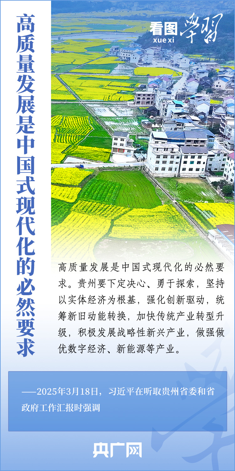 3月17日至18日,習(xí)近平總書記先后到貴州省黔東南苗族侗族自治州、貴陽市等地考察調(diào)研,并聽取貴州省委和省政府工作匯報(bào)。總書記強(qiáng)調(diào),貴州要堅(jiān)持以高質(zhì)量發(fā)展統(tǒng)攬全局,以進(jìn)一步全面深化改革開放為動(dòng)力,堅(jiān)定信心、苦干實(shí)干,穩(wěn)中求進(jìn)、善作善成,在中國式現(xiàn)代化進(jìn)程中展現(xiàn)貴州新風(fēng)采。一起來學(xué)習(xí)!
