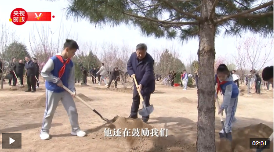 中共中央總書記、國家主席、中央軍委主席習近平3日上午在參加首都義務植樹活動時強調,植樹造林是生態文明建設重要一環。各地區各部門要進一步行動起來,動員組織廣大干部群眾積極參與造林綠化,踐行綠色發展理念,弘揚生態文化,匯聚共建美麗中國的磅礴力量,讓祖國大地更加綠意盎然、生機勃發。 [詳細]