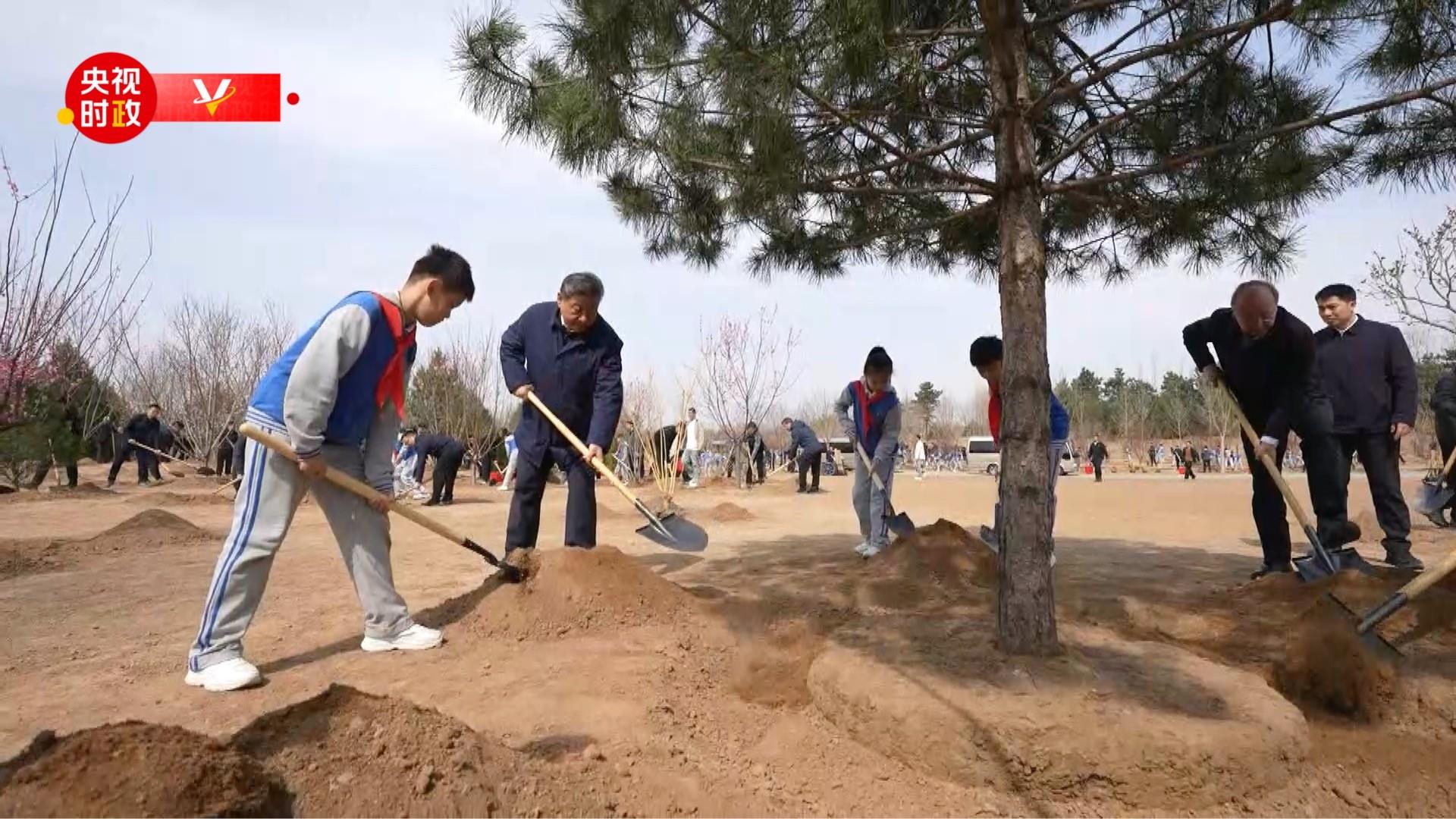 鏟土造坑、培土圍堰、提水澆灌……習近平接連種下油松、金枝槐、美人梅、車梁木、杜仲、元寶楓等多棵樹苗。