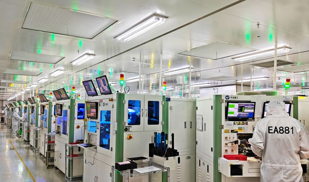 走進重慶市天實精工科技有限公司無塵車間,智能機器人有條不紊地將芯片送上生產(chǎn)線,經(jīng)過自動清洗、表面貼裝、芯片封裝、鏡頭裝聯(lián)等工序,一顆顆攝像頭模組就此誕生。