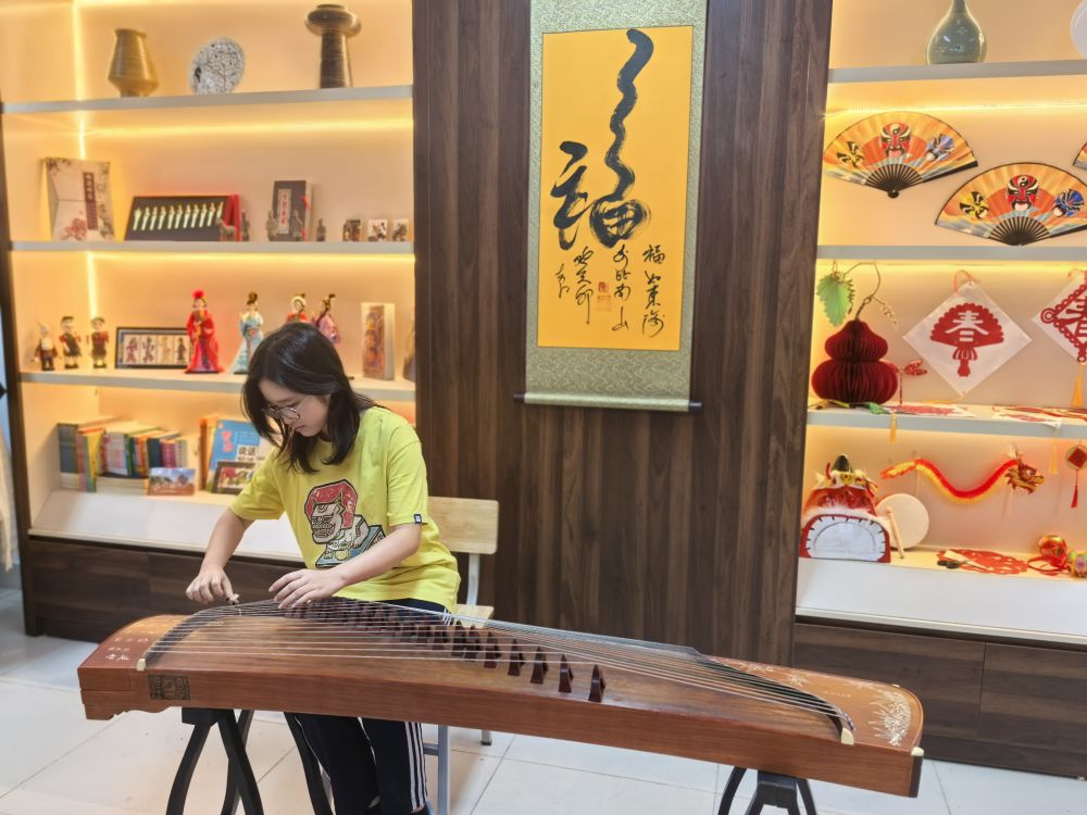 3月29日,在河內中國文化中心的支持下,越南河內-阿姆斯特丹高中正式啟用“越中文化室”。在充滿中華文化韻味的文化室一角,該校高三學生阮霞英端坐到古箏前,彈起一曲《女兒情》。悠揚旋律終了,她用流利的中文分享起自己的“留學夢”:“我特別喜歡中國文化,已申請去中國的大學就讀,非常期待夢想成真的那一天。”