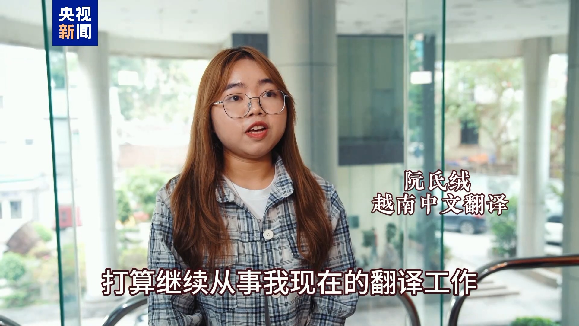 阮氏絨 越南中文翻譯:打算繼續從事我現在的翻譯工作,因為我覺得翻譯不僅是語言的工作,更多的是文化,兩個之間的文化交流。