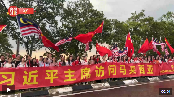 習(xí)近平乘車從機場赴下榻飯店途中,當?shù)厝A僑華人在道路兩旁揮舞中馬兩國國旗,高舉“熱烈歡迎習(xí)近平主席訪問馬來西亞”、“中馬友誼萬歲”的紅色橫幅,以喜慶熱烈的舞獅表演歡迎習(xí)近平主席到訪。