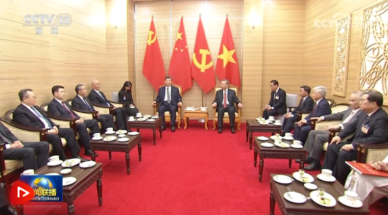 習(xí)近平指出,這次訪問時間雖短,但活動豐富、成果豐碩。雙方重申共同壯大世界社會主義事業(yè)的政治意愿,都期待朝著“六個更”總體目標(biāo)全面推進(jìn)兩國戰(zhàn)略合作,都表示抵御外部風(fēng)險挑戰(zhàn),維護(hù)地區(qū)和平穩(wěn)定和國際公平正義。我對中越關(guān)系發(fā)展前景充滿信心。雙方要全面落實這次訪問成果,持續(xù)推進(jìn)中越命運(yùn)共同體建設(shè)。