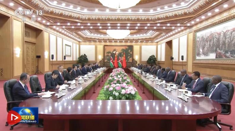 4月24日上午,國家主席習近平在北京人民大會堂同來華進行國事訪問的肯尼亞總統魯托舉行會談。兩國元首一致同意將雙邊關系定位提升至新時代中肯命運共同體。