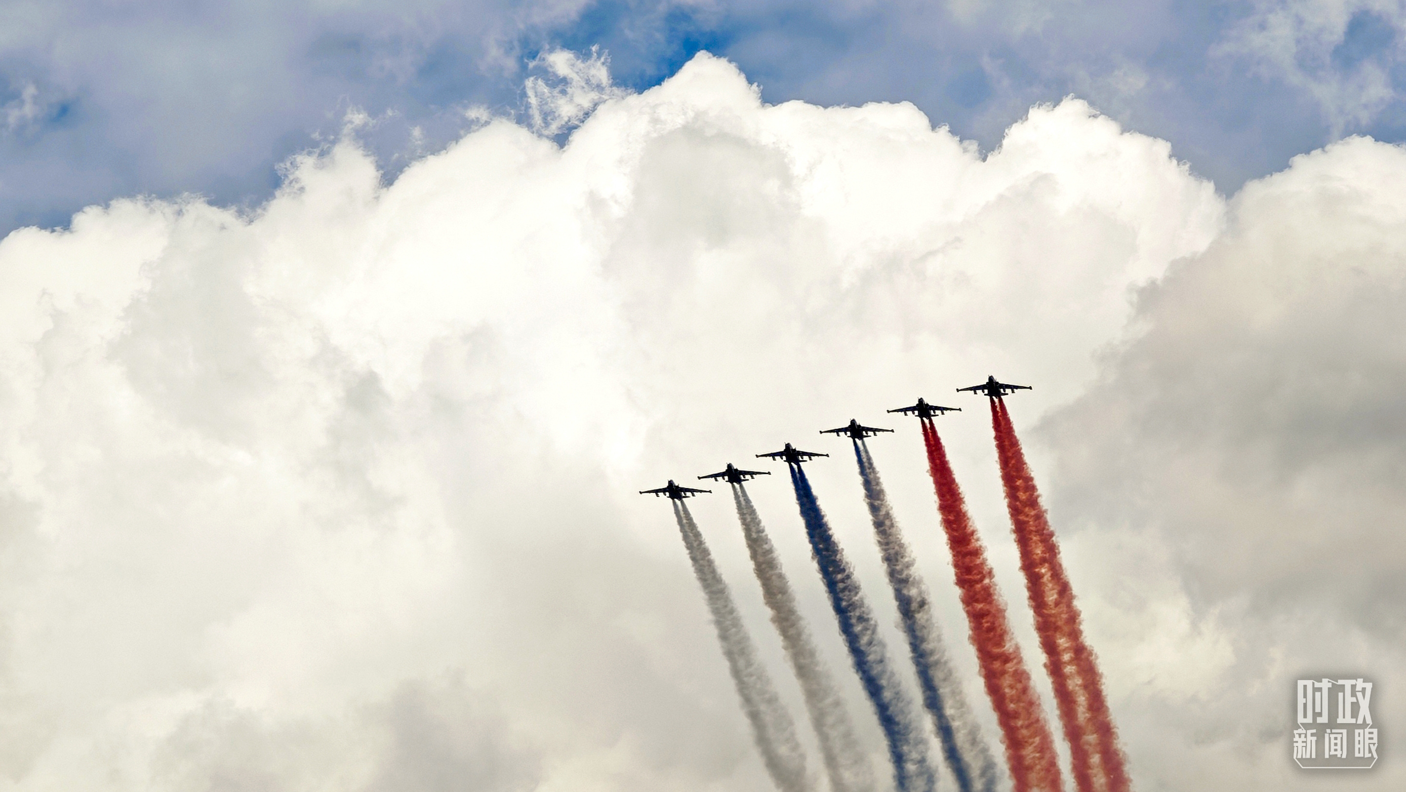 5月7日,參加紀念蘇聯偉大衛國戰爭勝利80周年慶典彩排的空中飛行梯隊飛越紅場。(總臺央視記者王哈男拍攝)