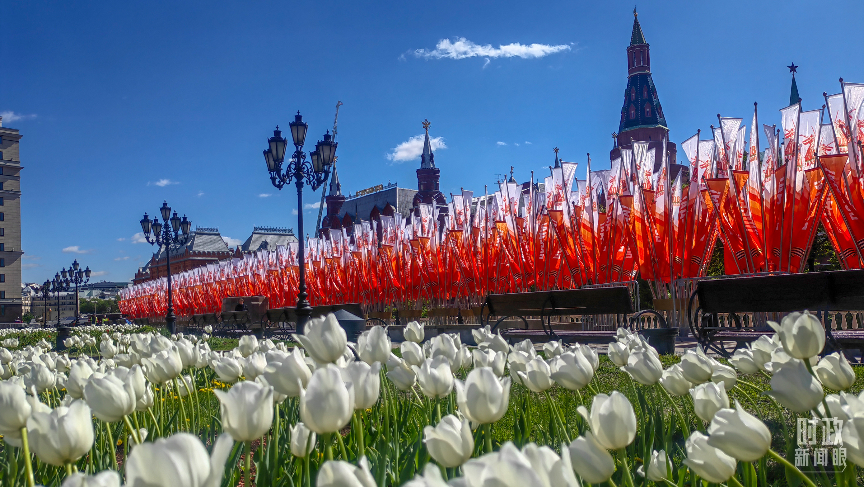 莫斯科街頭的勝利日旗幟。(總臺央視記者楊波拍攝)