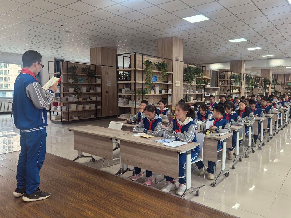 2025年4月16日,甘肅蘭州,學(xué)生們?cè)趫D書館上閱讀課。