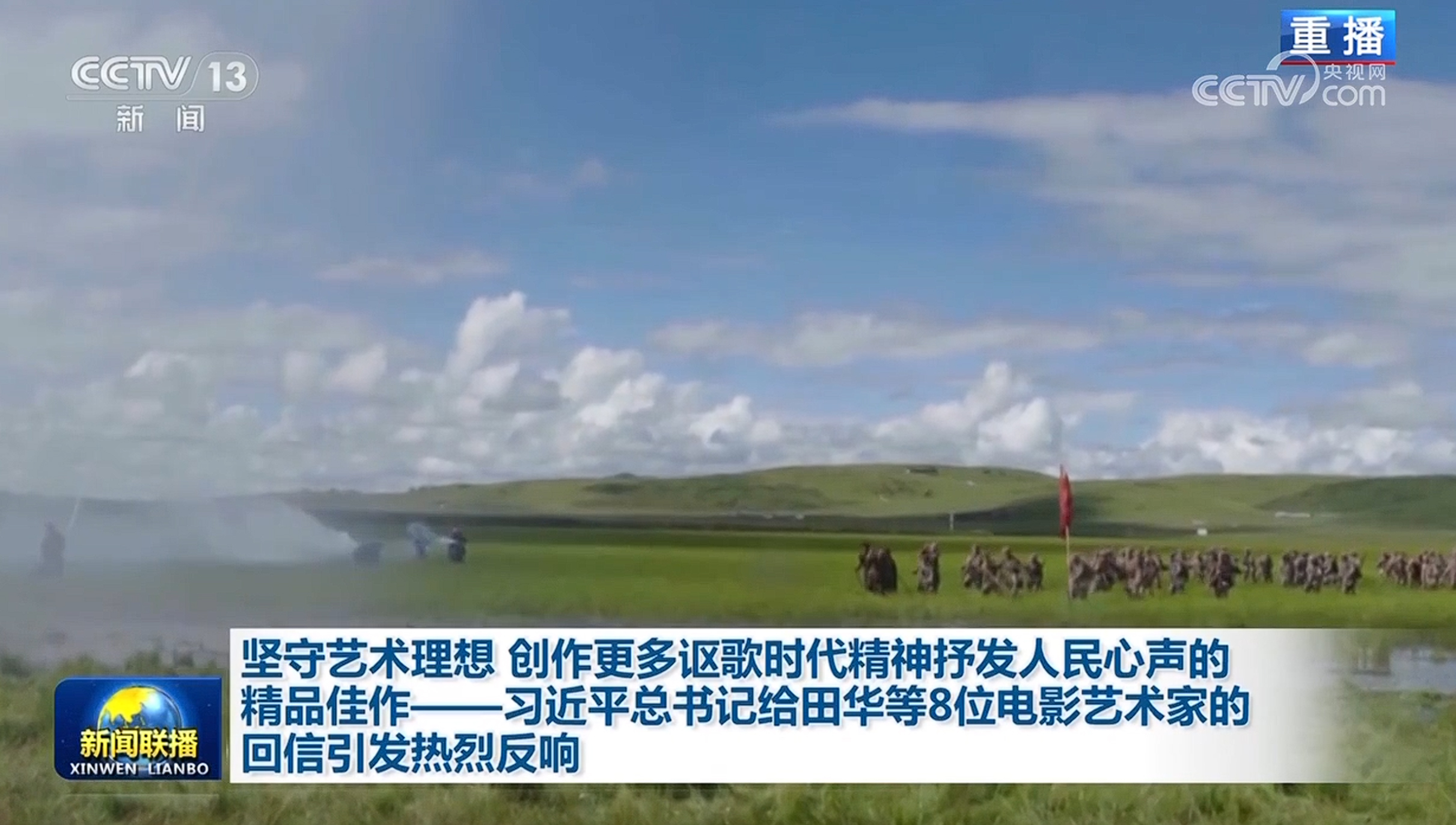 央視網消息(新聞聯播):近日,習近平總書記給田華等8位電影藝術家回信,對電影工作者提出殷切期望。廣大影視文藝工作者表示,總書記的回信溫暖人心、催人奮進,一定牢記總書記囑托,堅定理想信念,扎根生活沃土,反映人民心聲,創作更多有筋骨、有道德、有溫度的文藝作品,為推動社會主義文化大發展大繁榮、建設文化強國貢獻力量。