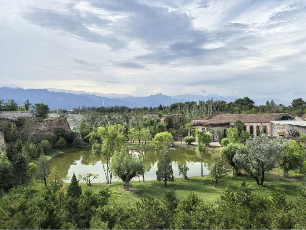 寧夏銀川市西夏區鎮北堡鎮源石酒莊經過修復的廢棄礦坑,如今滿目新綠(2025年7月8日攝)。新華社記者 馬麗娟 攝