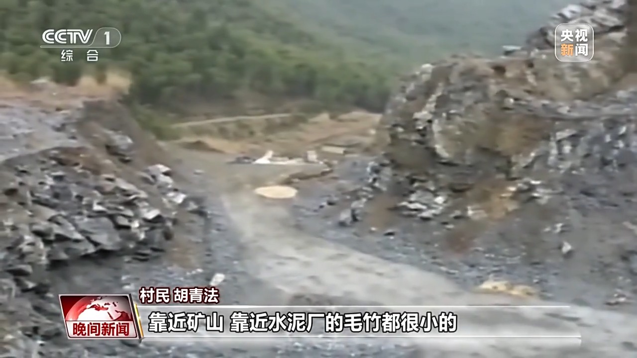 村民 胡青法那片山都是灰蒙蒙的。那時候很明顯,靠近礦山、靠近水泥廠的毛竹,都很小的。
