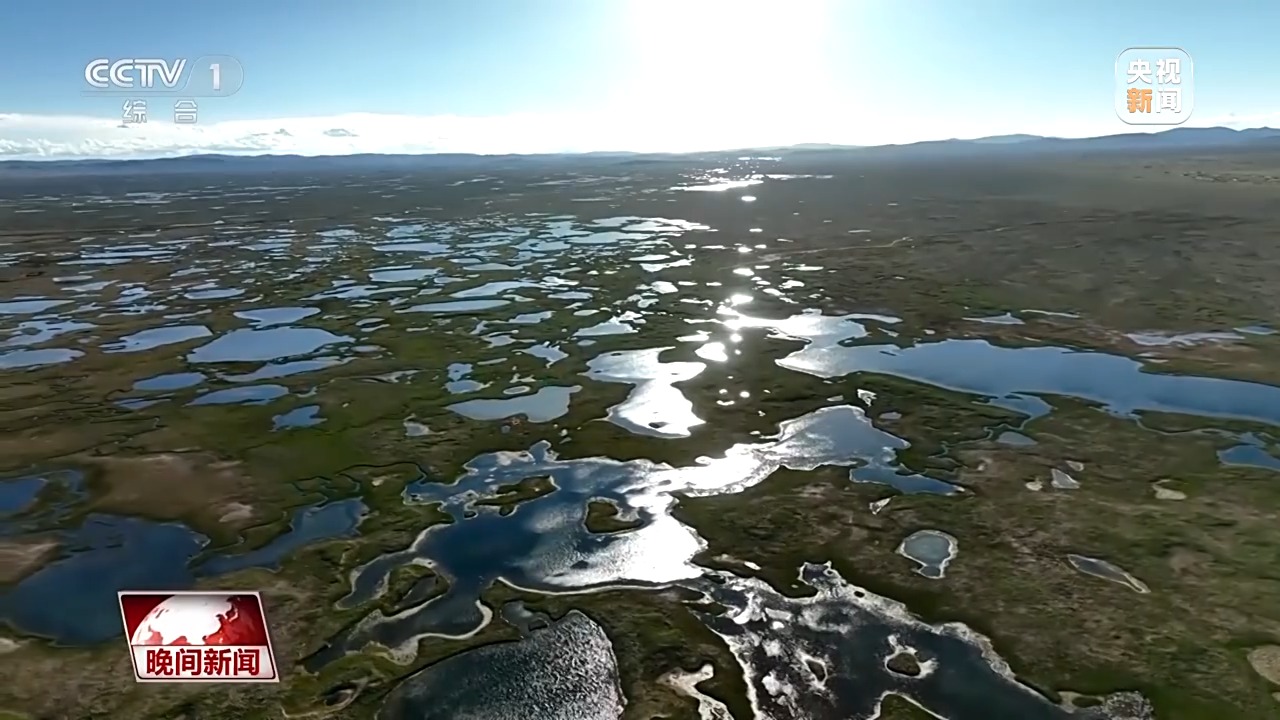 從高空俯瞰,無數湖泊沼澤,在陽光的照耀下,星星點點、光彩奪目,如同綻放的花朵,點綴在高原之上。