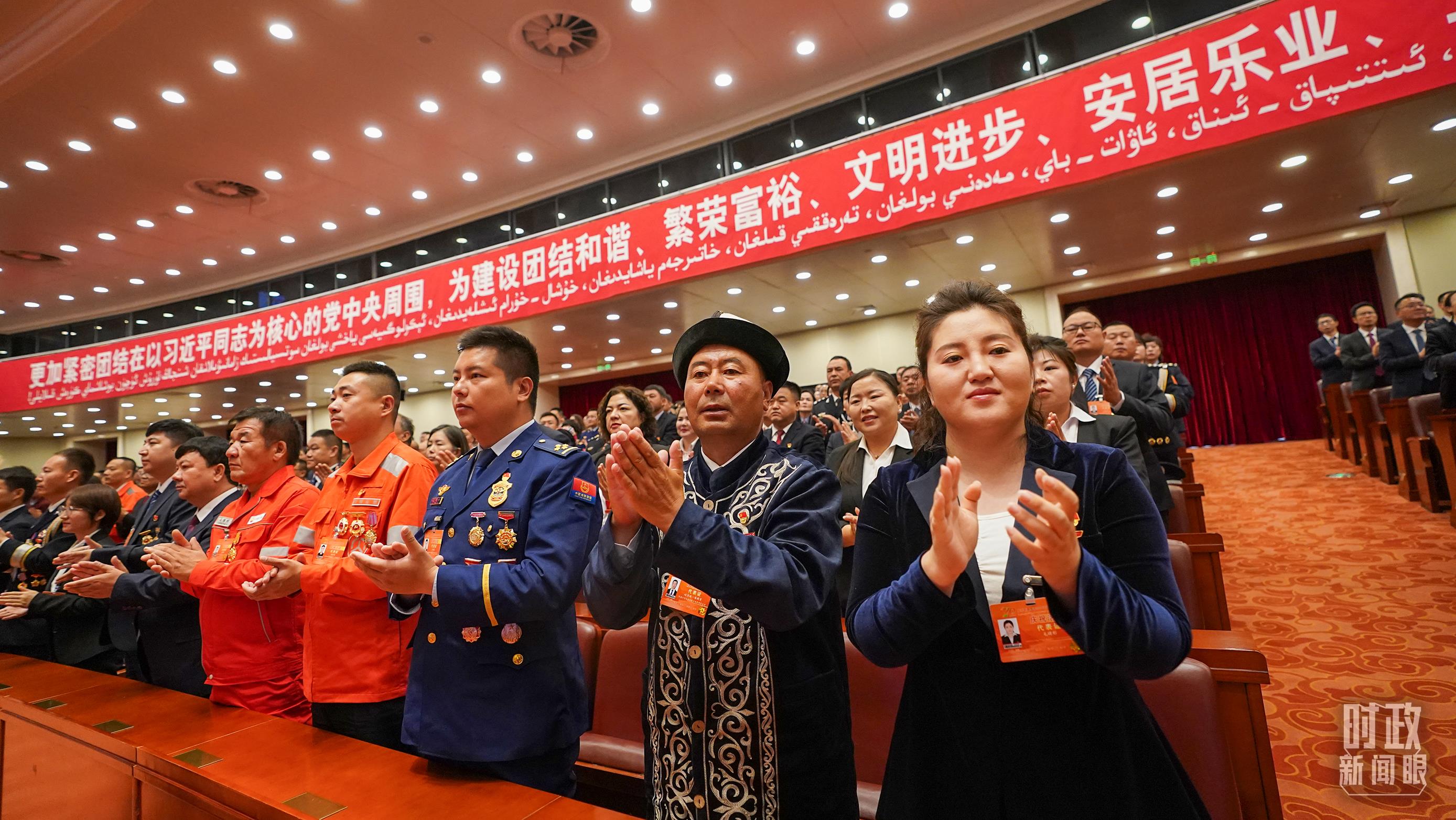 《時政新聞眼》注意到,出席當天大會的除了黨和國家領導人、新疆各族各界干部群眾代表,還有國家勛章和國家榮譽稱號、“七一勛章”“八一勛章”獲得者和先進模范代表等。他們既是新疆的建設者,也是新疆發展的見證者。