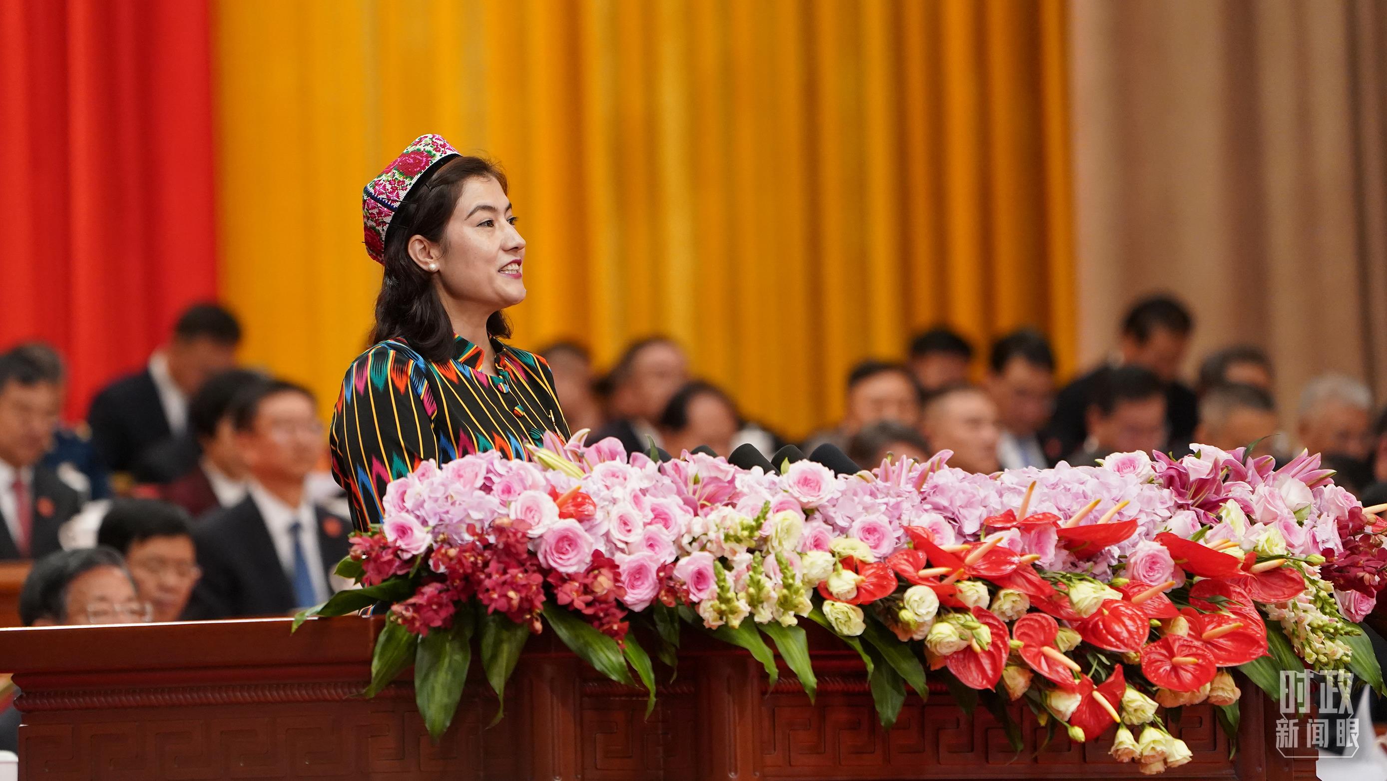 喀什地區巴楚縣童夢幼兒園園長艾米拉古麗·阿不都作為維吾爾族群眾代表發言。她曾見證了自己所在的幼兒園由低矮的土坯房變成標準化幼兒園,成為鄉村最漂亮的建筑。