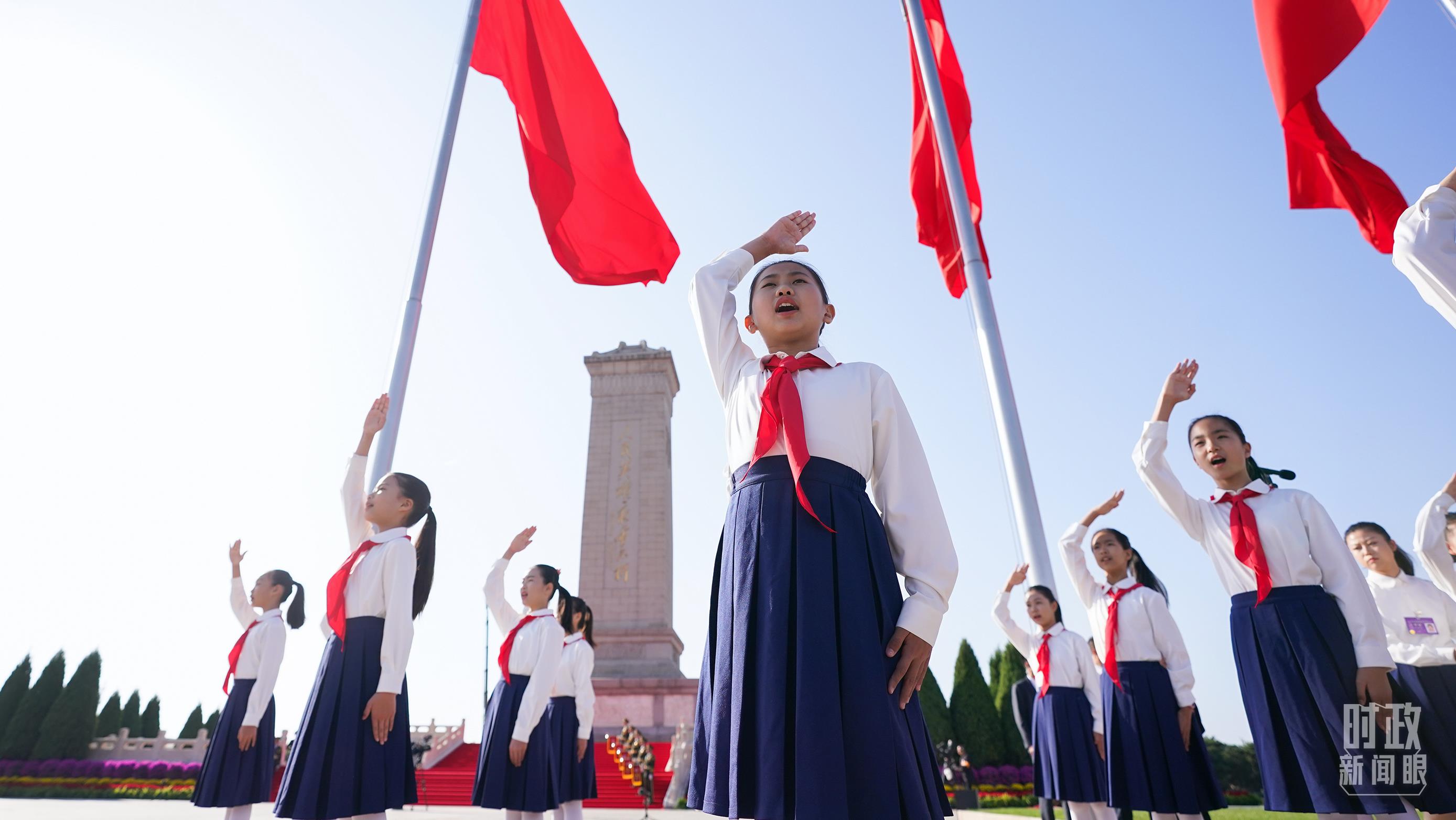 參加烈士紀念日向人民英雄敬獻花籃儀式的少年兒童。(總臺記者李晉拍攝)